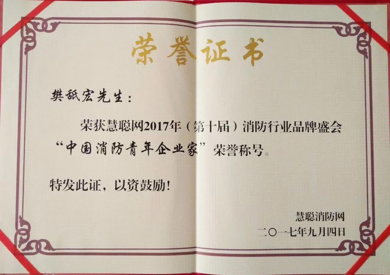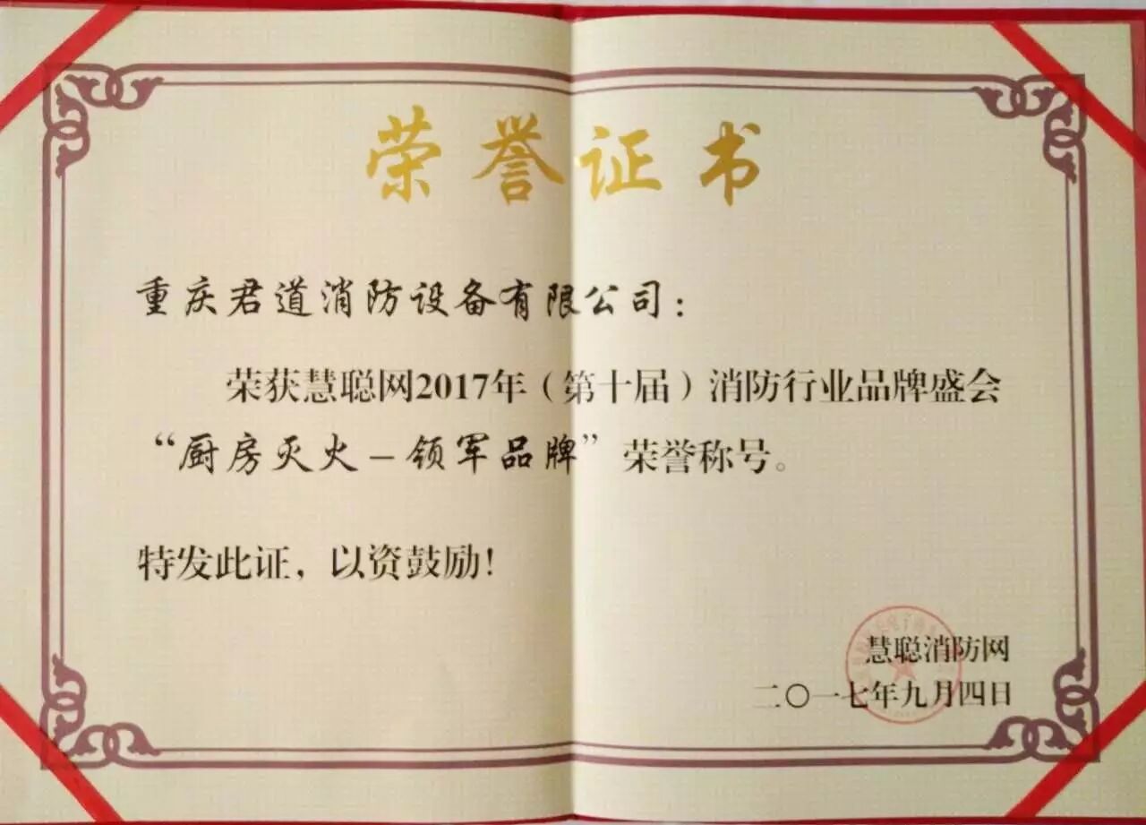 荣誉,只为证明过去,未来,我们全力以赴!时间:2017-09-06 2017年9月4日,由慧聪消防网、慧聪应急救援网主办,由中国消防协会、中国阻燃学会、中国建筑学会建筑防火综合技术分会、建筑给水排水研究分会指导,消防技术创新联盟、中国电子商务协会、中国安全产业协会、中国建筑业协会材料分会协办的CFIC2017中国消防安全产业大会(China Fire Industry Conference)暨(第十届)消防行业品牌盛会在北京首都机场希尔顿酒店举办。 重庆君道消防设备有限公司荣获“厨房灭火单项领军品牌”,我公司总经理樊舐宏先生荣获“中国消防青年企业家”称号。 我公司总经理与慧聪消防网总经理王军先生及消防技术创新联盟秘书长高伟先生合影 我公司总经理樊舐宏先生及副总经理程智伟先生与消防技术创新联盟秘书长高伟先生合影 获此殊荣, 是对我们的肯定, 也是让我们进步的动力! 荣誉,只为证明过去, 未来,我们全力以赴! |